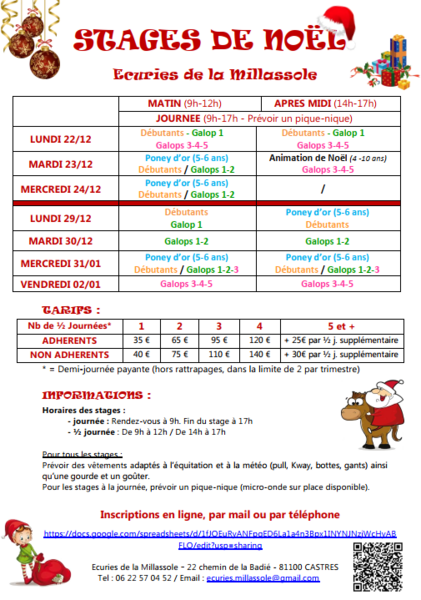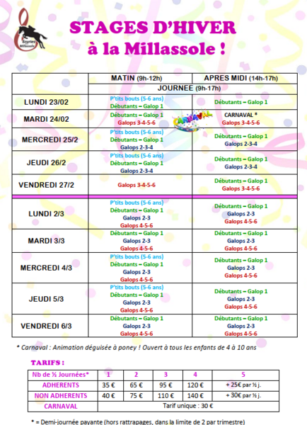 STAGES A LA 1/2 JOURNEE (9h-12h / 14h-17h) OU A LA JOURNEE (9h-17h avec un pique nique).